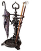 This exclusive, 45-pound work of functional art is crafted in quality, powder-coated heavyweight foundry cast iron just like the original antique. Stylized leaves and ornate scrollwork climb the full yard of this substantial piece, showcasing a finely rendered Greenman as its centerpiece. Whether you simply admire its beauty or its functionality, the addition of collectible walking sticks and umbrellas makes even more of an artistic statement. 19.5"Wx17.5"Dx36"H. 45 lbs.