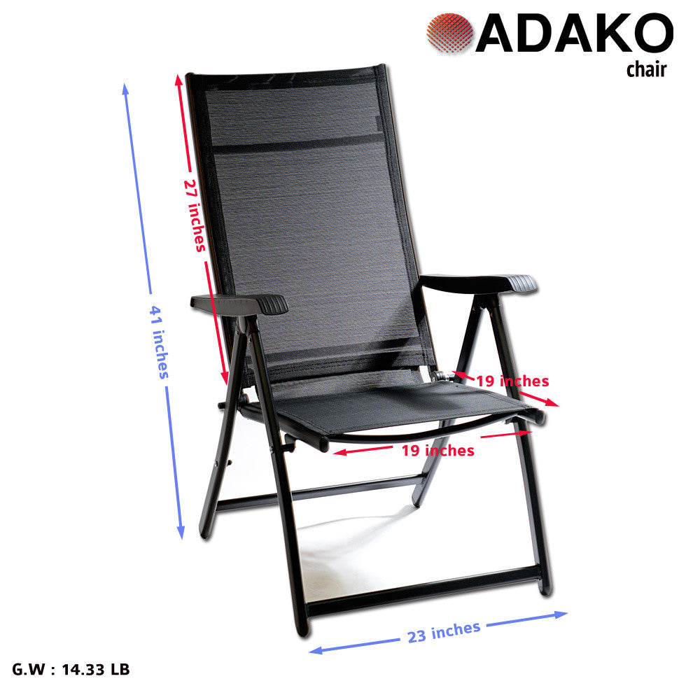 High Quality Heavy Duty Durable Metal Framed Folding Chair with Zero Gravity Positionning Specifications Dimensions: 41" x 23" x 19" Weight: 14 lbs Frame Material: Steel Seat Material: Mesh Color: Black Adjustable for 7 different angles: 90 Degrees 95 Degrees 105 Degrees 115 Degrees 125 Degrees 135 Degrees 150 Degrees Don''t forget, you pay for the quality, this is highest quality adjustable folding chair on the market