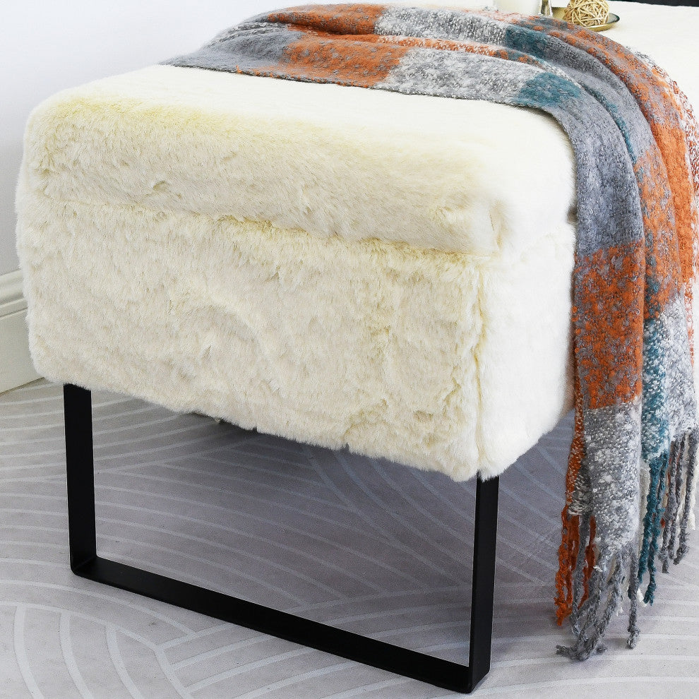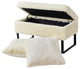 UPHOLSTERED ACCENT! Package includes: (1) Heavy Faux Fur Ottoman - 36" x 18" x 19"in Height ; (2) Matching Color Pillow - 20" x 20"AN ARRAY OF COLORS! Each ottoman measurements are 36 L x 18 W x 19 H inches when assembled and offers a 200-pound capacity. 2 Pieces of Matching Color 20" x 20" Pillows comes inside the ottoman. Metal hairpin legs are sturdy and durable to withstand full weight capacity. Plush, multi-density cushioning provides a soft but supportive seat. With an array of colors to choose from it��s easy to match one with your existing decor.Every time your loved one slips under their pristine faux mink throw blanket and kick their feet up, they will think of you and your thoughtfulness. Ottomans are wrapped in a plastic bag then boxed for ultimate protection.MINOR ASSEMBLY! Simply screw metal hairpin legs into each corner of the bench with the provided screws and your bench is ready to enjoy. Be prepared with a Phillips screwdriver. Hairpin legs and screws arrive in the hidden zipper compartment under the seat. Designed and manufactured by Home Soft Things, the trusted source for stylish textile goods and furniture.PROTECT AND CARE! Spot clean seat cushion cover only on visible stains and spots using mild soap and a clean, soft towel. Metal hairpin legs may be wiped with a clean, damp towel.