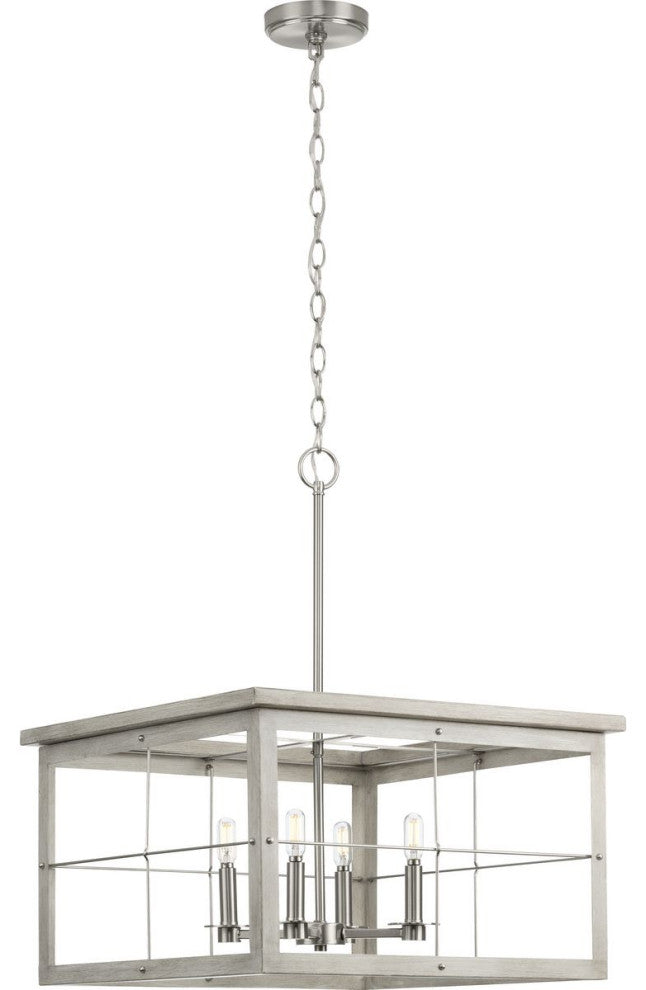 Hedgerow 4-Light Grey Washed Oak Farmhouse Chandelier Light