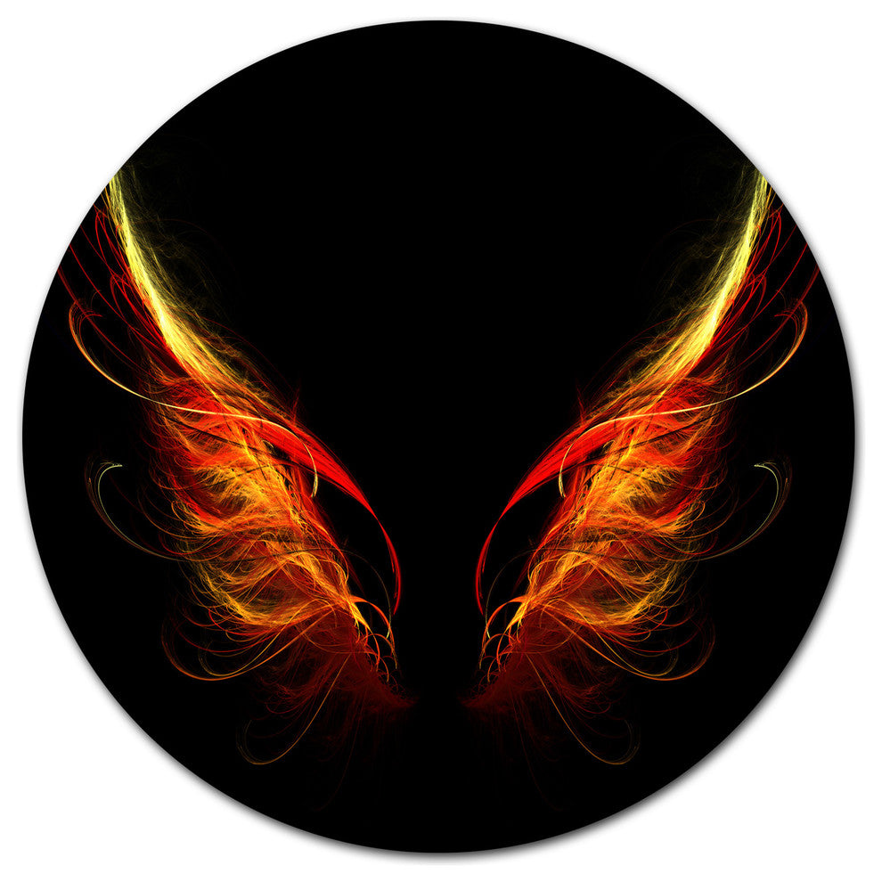 Bring Contemporary Abstraction to your home with this large Circle Metal wall art. This Hell Wings on Black Background Metal Artwork makes it the focal point of any room or office.