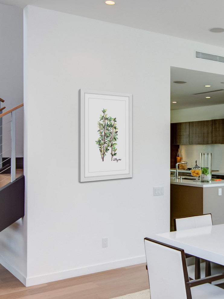 "Herb Thyme" Framed Print by Rachel Byler features vivid tones and supple artistry. Mounted in a gorgeous frame, this 20 inch wide by 30 inch tall piece will be an exceptional addition to any room. Top quality Giclee print on high resolution Archive Paper Artwork by Rachel Byler Professionally framed and mounted on acid free archive matte High quality durable non-warping frame Arrives ready to hang Includes a certificate of authenticityMade in the USAArtist signature on the front