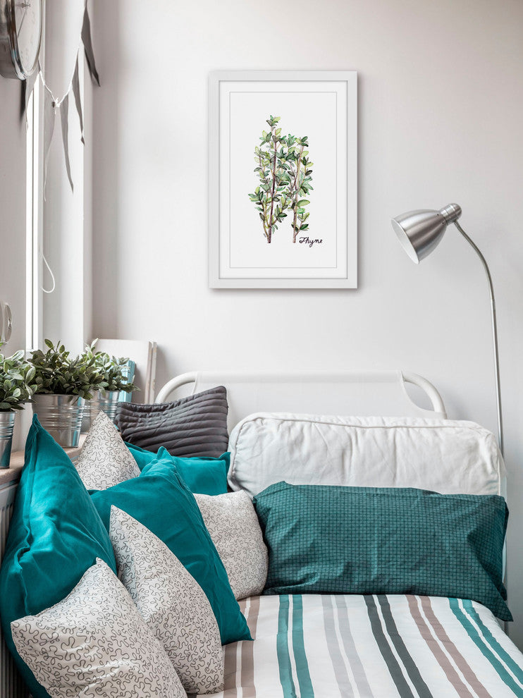 "Herb Thyme" Framed Print by Rachel Byler features vivid tones and supple artistry. Mounted in a gorgeous frame, this 30 inch wide by 45 inch tall piece will be an exceptional addition to any room. Top quality Giclee print on high resolution Archive Paper Artwork by Rachel Byler Professionally framed and mounted on acid free archive matte High quality durable non-warping frame Arrives ready to hang Includes a certificate of authenticityMade in the USAArtist signature on the front