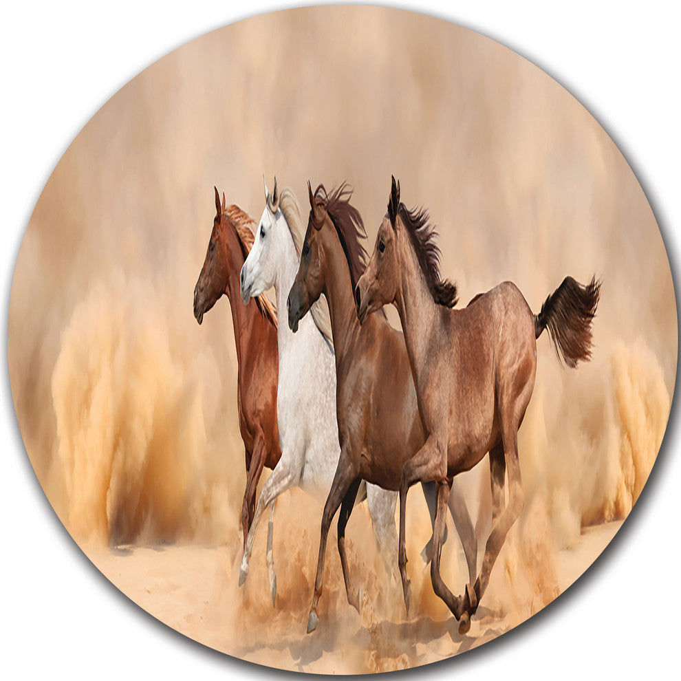 Herd Gallops In Sand Storm, Landscape Photo Round Metal Wall Art, 11"