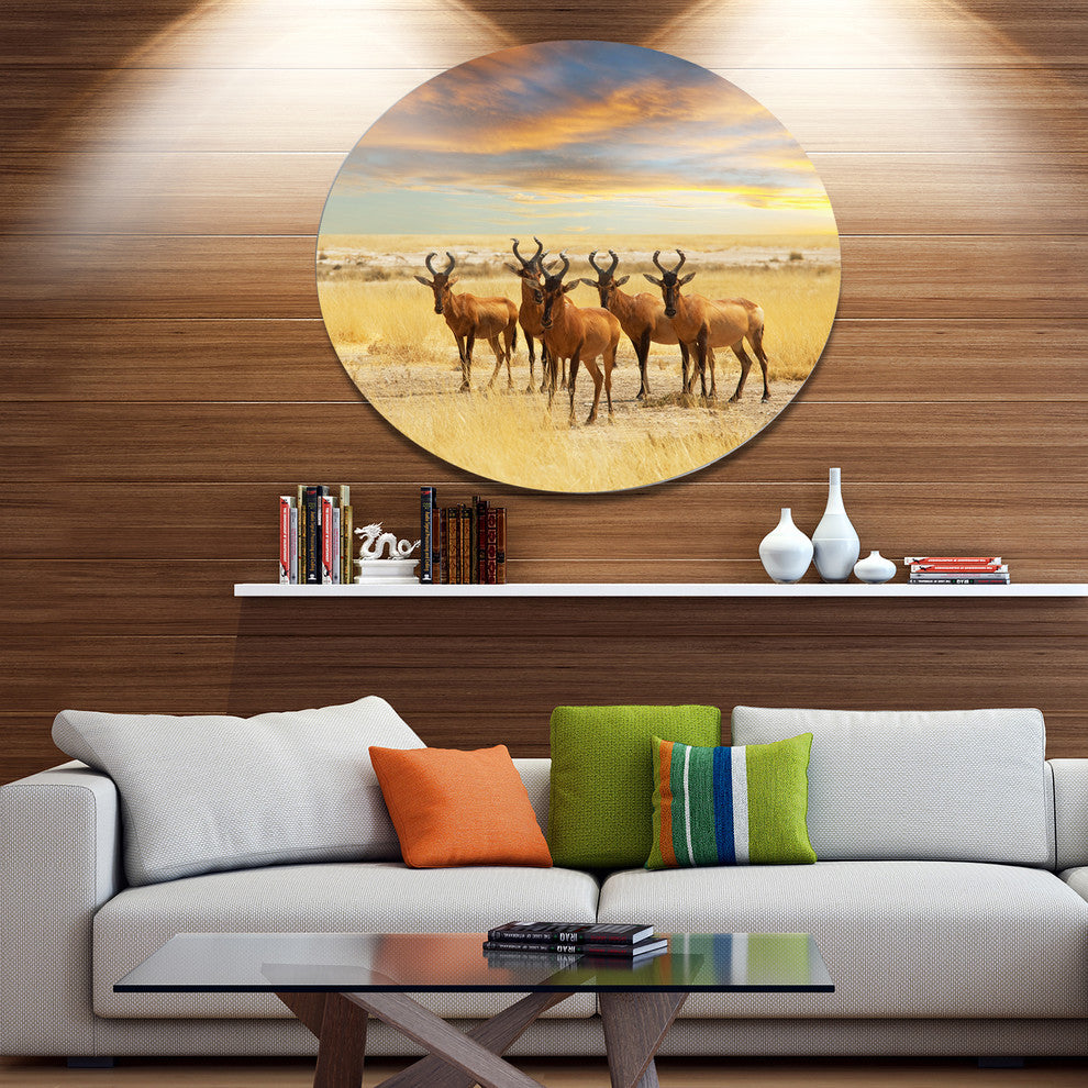 Bring Contemporary Abstraction to your home with this large Circle Metal wall art. This Herd of Antelope in Grassland Metal Artwork makes it the focal point of any room or office.