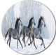 Herd Of Horses Run Across Snow, Landscape Round Metal Wall Art, 11"