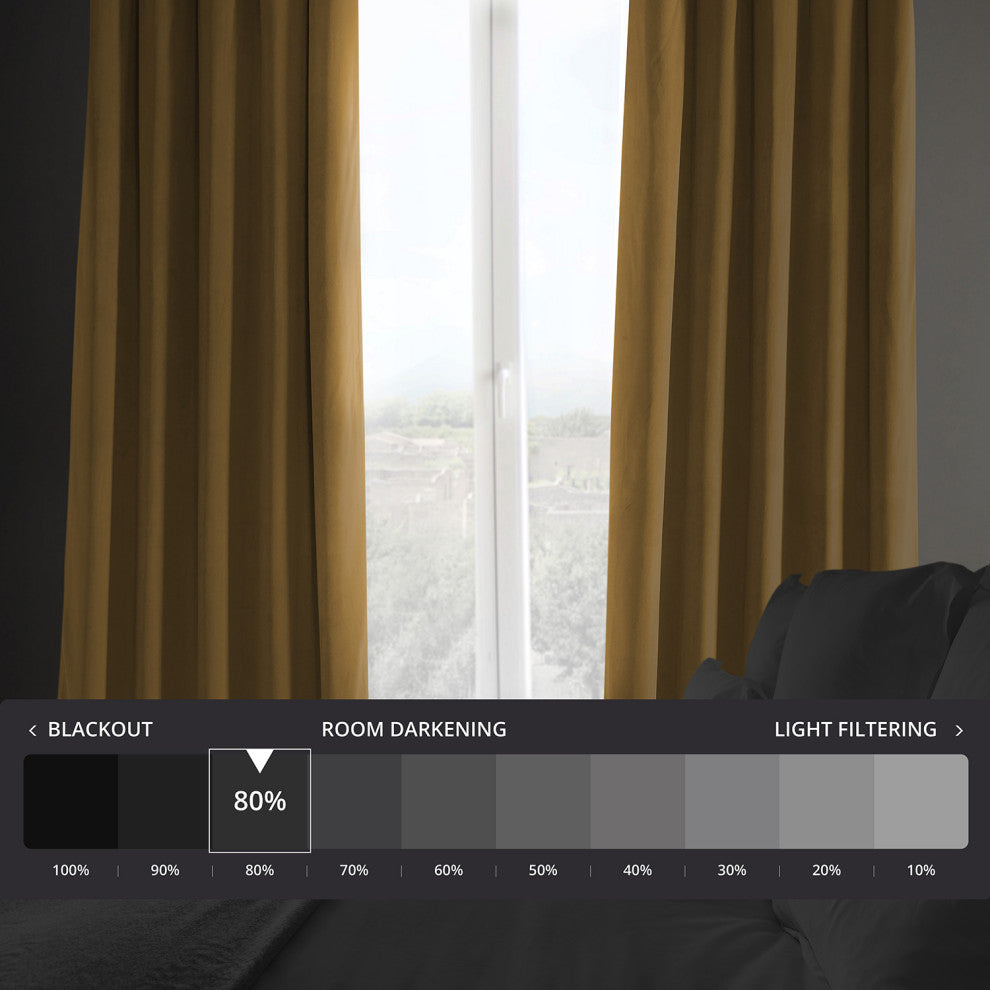 Heritage Plush Velvet Curtain Single Panel, Retro Gold, 50"x84"