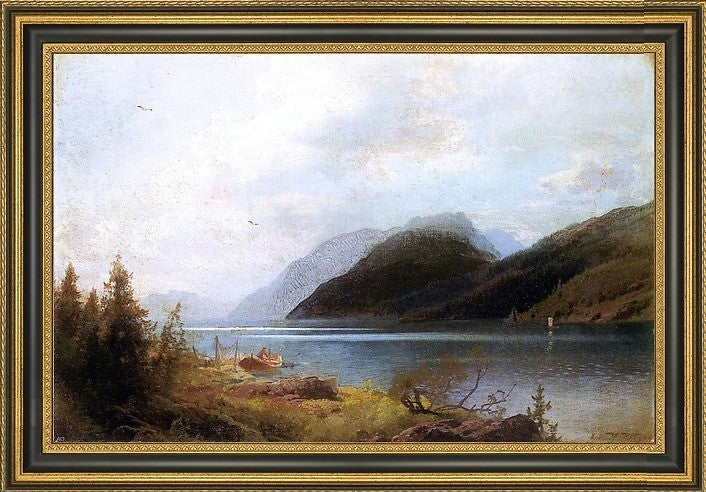 18" x 27" Herman Herzog Sagne Fjord framed premium canvas print reproduced to meet museum quality standards. Our Museum quality canvas prints are produced using high-precision print technology for a more accurate reproduction printed on high quality canvas with fade-resistant, archival inks. Our progressive business model allows us to offer works of art to you at the best wholesale pricing, significantly less than art gallery prices, affordable to all. This artwork is hand stretched onto wooden stretcher bars, then mounted into our 3 3/4" wide gold finish frame with black panel by one of our expert framers. Our framed canvas print comes with hardware, ready to hang on your wall. We present a comprehensive collection of exceptional canvas art reproductions by Herman Herzog.