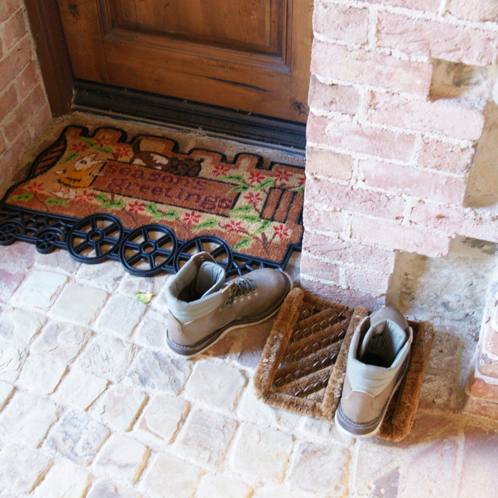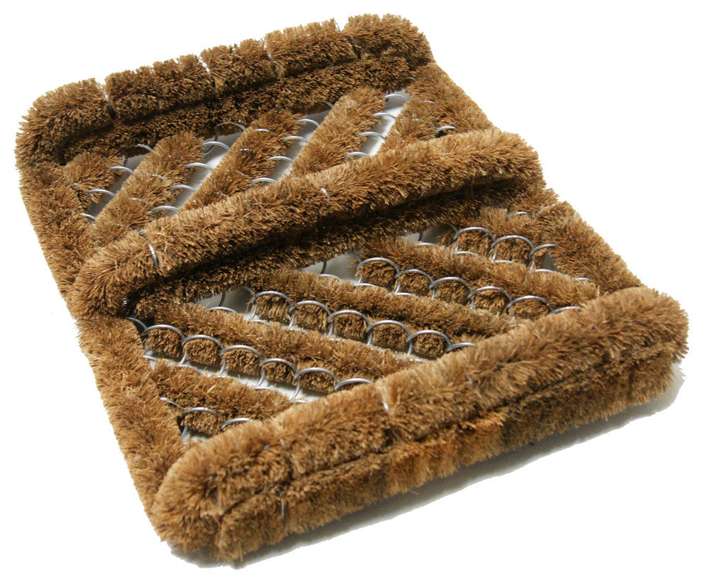 This 2.5 x 12 x13 inch boot scraper is made with 100% natural coco coir fiber! Makes a smart, environmentally friendly shoe scraper for home doorways or mudrooms. This all weather outdoor boot brush removes dirt and mud from shoes to protect your indoor flooring, while its subtle design complements your entryway or mudroom decor. Simply shake, brush or vacuum for easy cleaning!