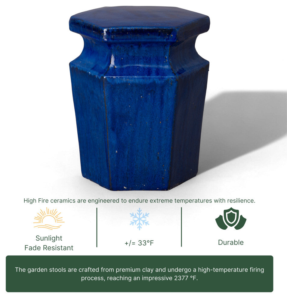 This Hex ceramic garden stool with a Blue glaze is the perfect touch to any indoor or outdoor space. It can be used as a side table, an extra-seat or as a planter pedestal. This collection offers the best combination of design and glazes.
