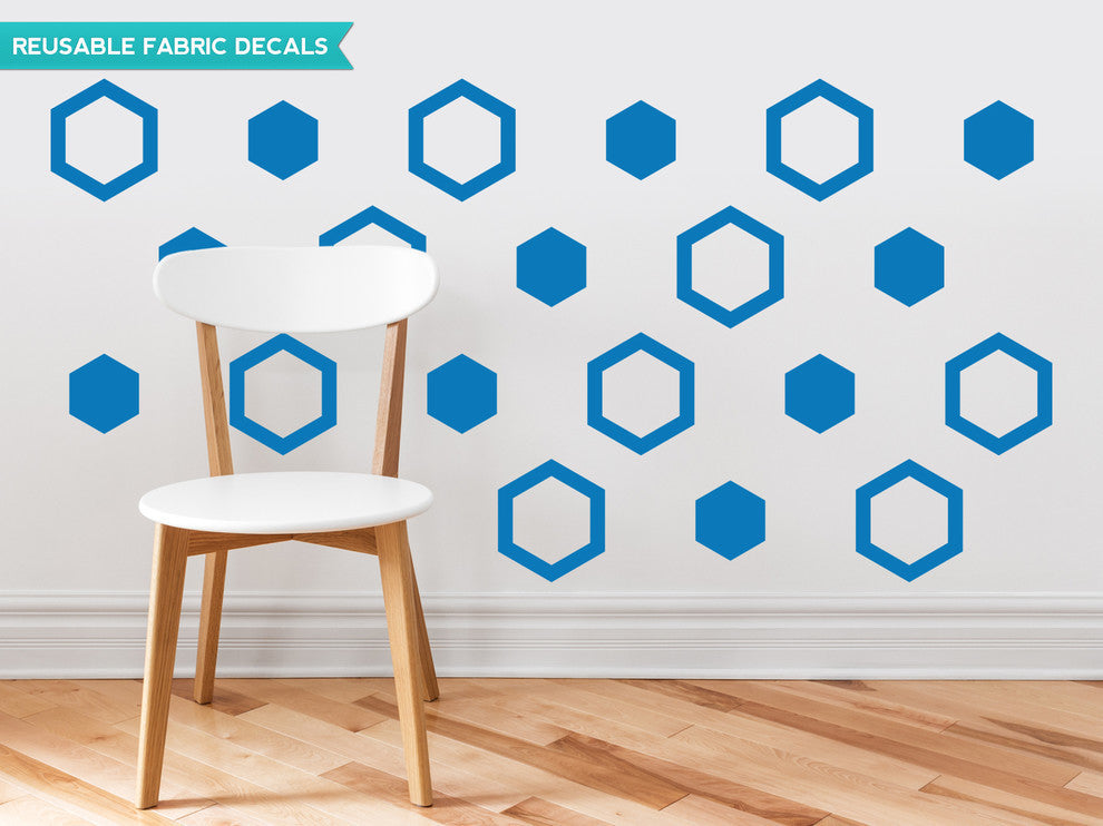 These beautiful hexagon fabric wall decals will add huge personality to your wall decor. The decals are made from a fabric material that is extremely easy to apply. Just peel and stick anywhere. They are repositionable and can be removed without leaving any sticky residue.