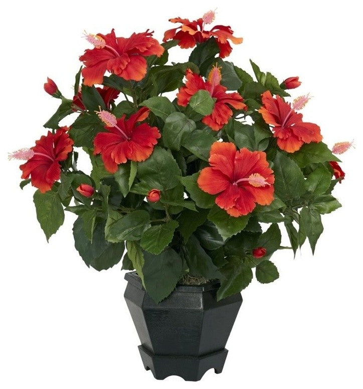 Hibiscus With Black Hexagon Vase Silk Plant