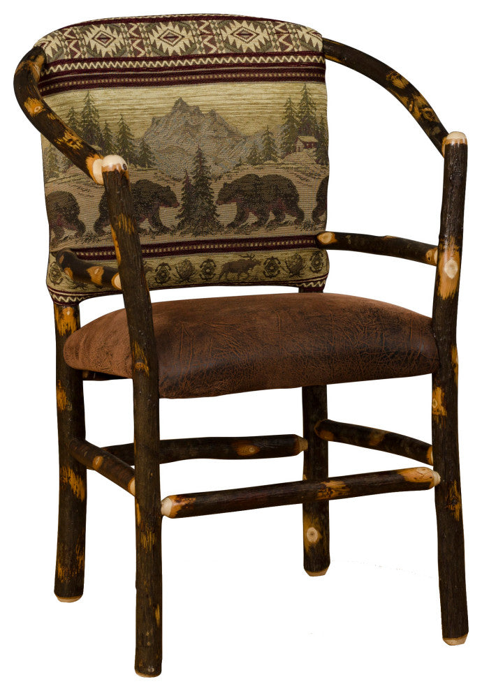 Hickory Log Hoop Chair with Faux Brown Leather Seat, Set of 2, Bear Mountain