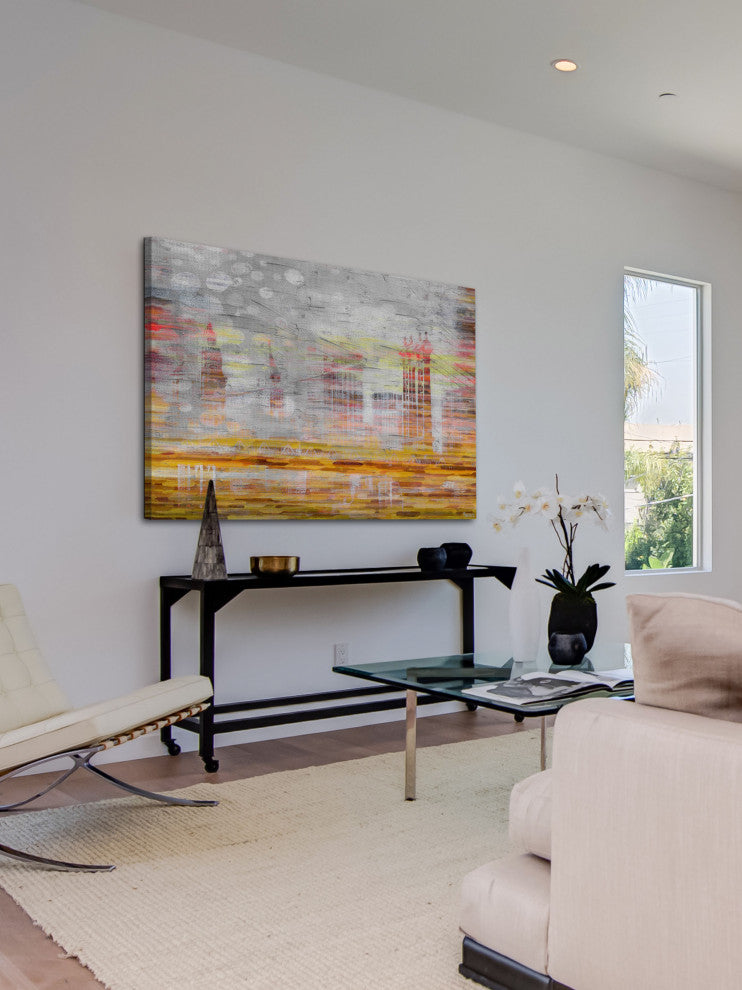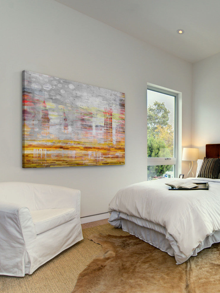 Striking and unique, the "Hidden Buildings" Print on Canvas by Parvez Taj will bring your walls to life. Printed on canvas, this 36 inch wide by 24 inch tall contemporary artwork will make a statement in any living room, dining room, or bedroom.- Fine art canvas print by Parvez Taj- Professionally hand stretched- Gallery wrapped in sustainable, non-warping wood- Arrives ready to hang- Made in the USA- Includes a certificate of authenticity- Artist signature on the front