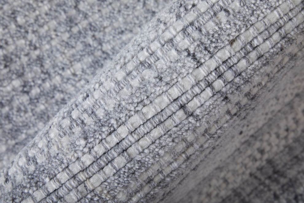 • This rug features a subtle plaid pattern in varying shades of light blue and gray, creating a soft and understated textured look.