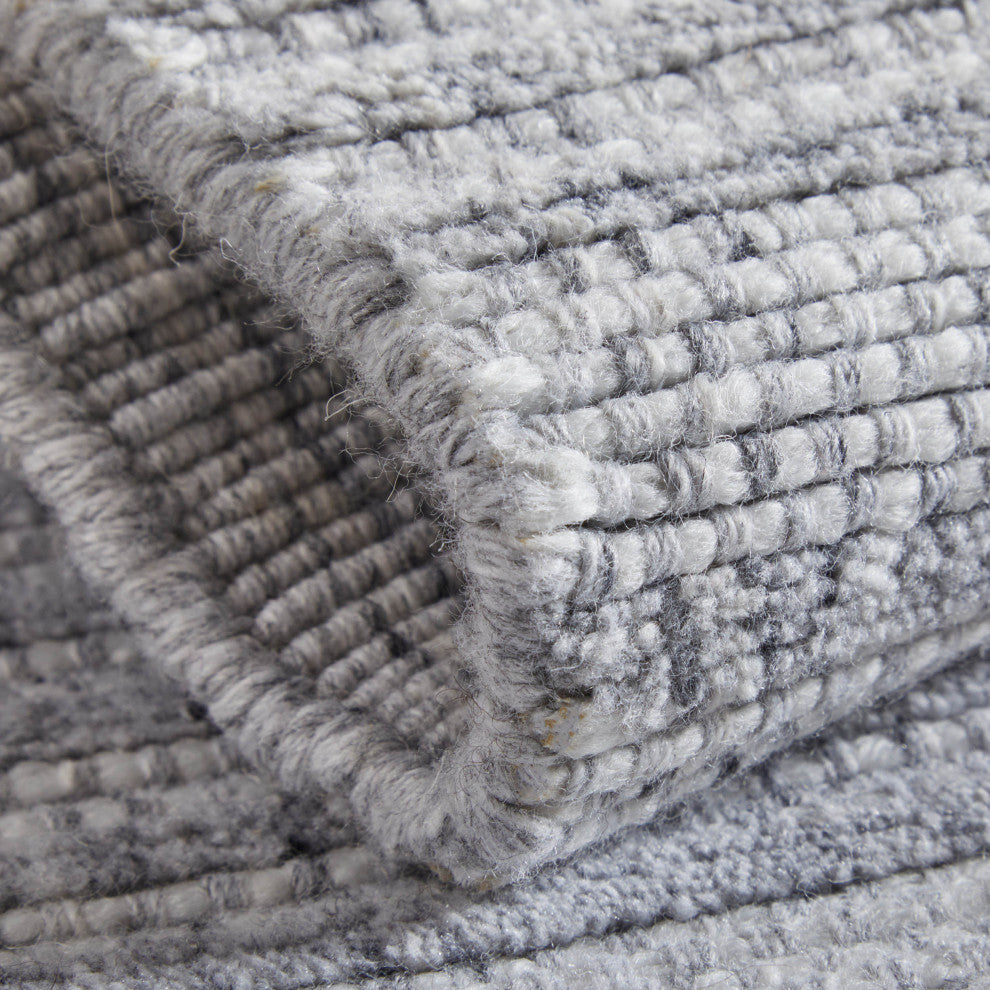 • This rug features a subtle plaid pattern in varying shades of light blue and gray, creating a soft and understated textured look.