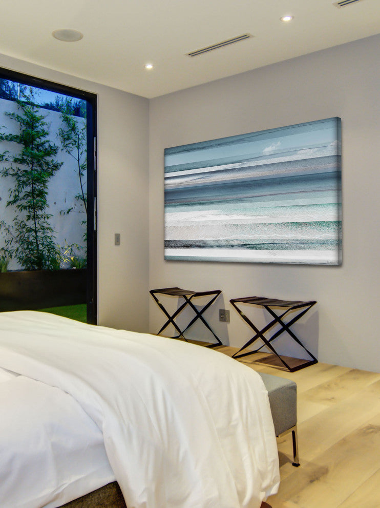 Striking and unique, the "Himara" Print on Canvas by Parvez Taj will bring your walls to life. Printed on canvas, this 18 inch wide by 12 inch tall contemporary artwork will make a statement in any living room, dining room, or bedroom.- Fine art canvas print by Parvez Taj- Professionally hand stretched- Gallery wrapped in sustainable, non-warping wood- Arrives ready to hang- Made in the USA- Includes a certificate of authenticity- Artist signature on the front