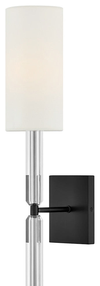 Glamorous crystal stems are the focal point of Anika''s alluring, synched silhouette. A columnar White Linen shade diffuses bright yet soft illumination, creating a slim, sophisticated look.
