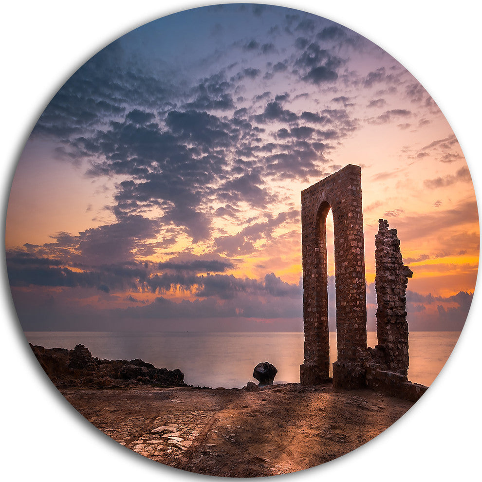 Bring Contemporary Abstraction to your home with this large Circle Metal wall art. This Historic African Ruins at Sunset Metal Artwork makes it the focal point of any room or office.