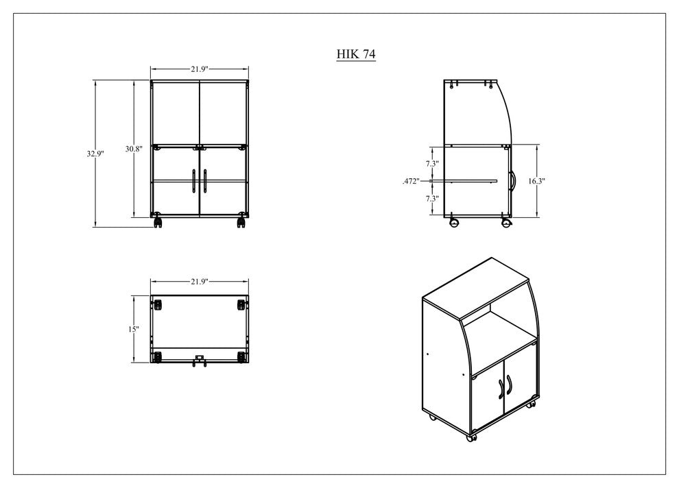 Contemporary and functional, this Hodedah Microwave Cart is the perfect solution for your kitchen storage needs. The large open storage space at the center houses your microwave. The top shelf can be used to store your toaster oven. It has an enclosed cabinet space which provides compact kitchen storage for small kitchen appliances, pots and pans. This microwave cart features wheels, which allows for easy mobility if necessary. It is made of wood, which ensures strength and durability. This microwave cart is available in multiple finishes and you can choose the one that blends with your existing interiors.Features : • Convenient and accessible way to store your microwave, toaster and other small appliances • Cabinet space to store small appliance, pots and pans and much more • Perfect for tight spaces, apartments and dorm rooms • Wheels for easy mobility • Great for home and office kitchen • Assembled dimensions: 33 in. H x 22 in. W x 15 in. D • Available in Beech, Cherry and WhiteSpecifications : • Product Dimensions : 33.00" H x 22.00" W x 15.00" D • Product Weight : 33.07 lbs