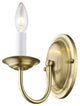 This one light wall sconce from the Home Basics collection is an alluring reflection of traditional style. The elegant sweeping arm and antique brass finish are beautiful details that unite for a breathtaking piece.Finish: Antique BrassMaterial: SteelNumber of Bulbs: 1Bulb Base Type: Candelabra BaseMax Wattage: 60Backplate Size: 4"W x 6"HExtension: 6.5"Suitable for Dry Locations? YesSuitable for Damp Locations? YesSuitable for Wet Locations? NoADA Compliant? No