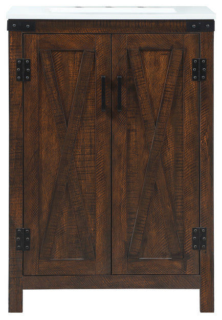 Reminiscent of barn doors, the 2 door cabinet adds both stylistic charm and function with its plethora of storage options for all your bathroom essentials. Whether for your bathroom or the guests'', everyone will marvel at its classic look for traditional and farmhouse aesthetics. A slab of Engineered Marble rounds out the piece up top, as well as the porcelain under mount sink and predrilled faucet holes. This vanity arrives fully assembled. (FAUCET NOT INCLUDED)