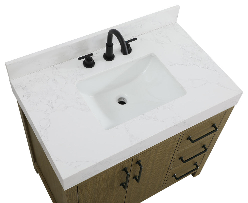 Home Living 36" Single Bathroom Vanity, Chestnut Brown With Backsplash