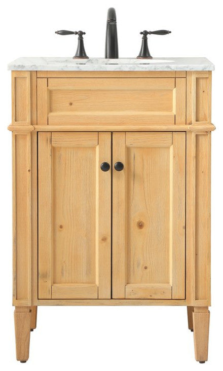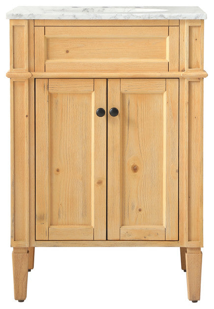 Home Living Vanity with Carrara White Marble Countertop, Natural Wood, 24", Single Sink