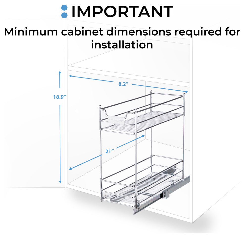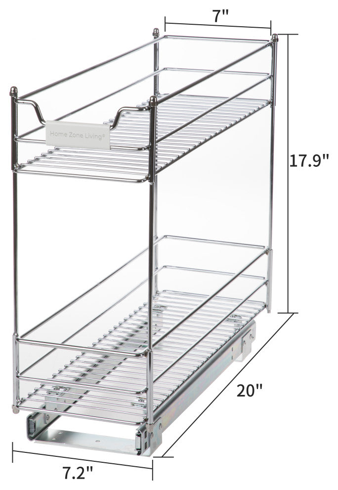 Home Zone Living Pull Out Drawer Cabinet Organizer, 2-Tier, 7 in. W x 20 in. D