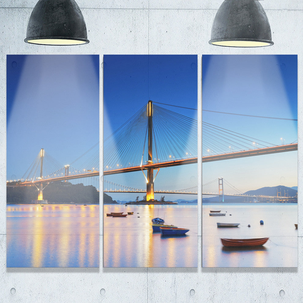 "Hong Kong High Bridge at Night" Sea Bridge Metal Wall Art, 3 Panels, 36"x28"
