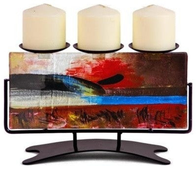 Create your own festival of lights with the Horizon Collection 3-Candle Candleholder. The perfect way to accessorize a console table or buffet in your living room or entryway, this candleholder is made by using innovative glass fusion techniques that are enhanced with hand-painted accents. Inspired by nature and the color palettes and design of abstract modern art, this candleholder boasts vibrant and lively hues. Candles not included.