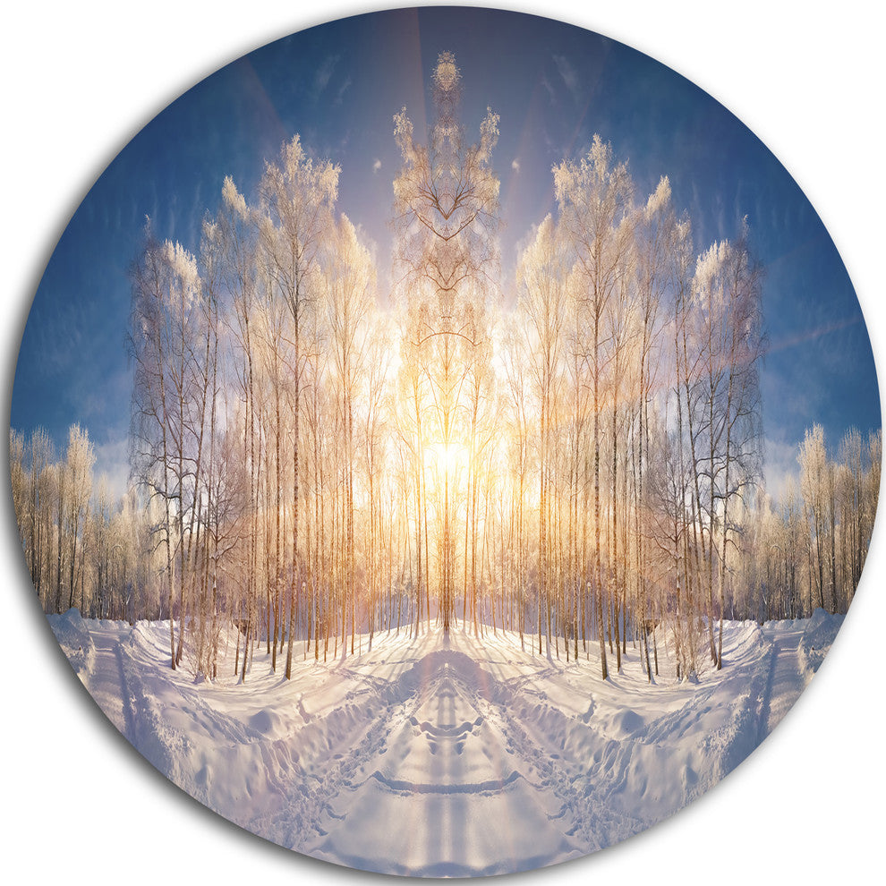 Horizontally Flipped Winter Land, Landscape Disc Metal Artwork, 11"
