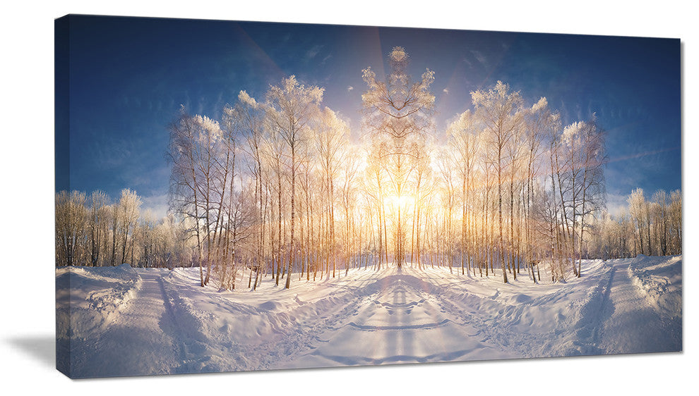 The Horizontally Flipped Winter Land canvas art print is sure to make an impression on anyone who sees it. This artwork is gallery wrapped around a 1-inch solid wood frame and arrives carefully packaged and entirely ready to hang on the wall. Design Art only uses the highest resolution and pigments to ensure a crisp colorful print that is never faded or pixelated. This artwork is sure to be a conversation starter in any home or office.