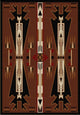 The two central figures in this rug may have just returned from a horse raid. The inlaid arrows tell part of the story. This striking rug turns an ordinary room into ?The? room. Made in America!