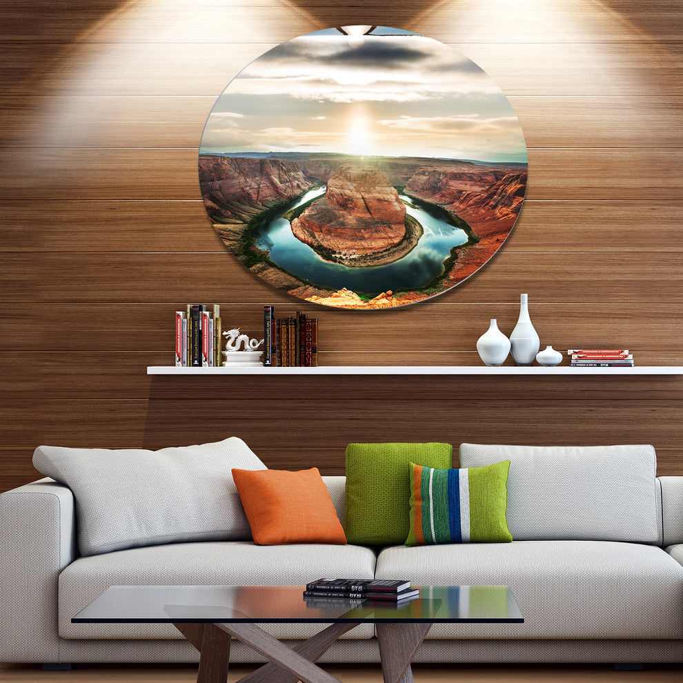 Bring Contemporary Abstraction to your home with this large Circle Metal wall art. This Horseshoe Bend At Sunset Metal Artwork makes it the focal point of any room or office.