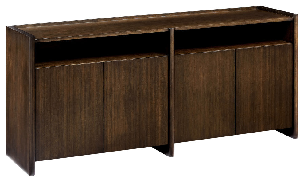 The Hudson sideboard combines contemporary design with a touch of luxury, offering a perfect blend of style and functionality. Its streamlined yet substantial silhouette makes it versatile enough to serve as a dining sideboard, media console, or office credenza. Beautifully finished on all four sides, Hudson features three spacious compartments with adjustable shelves for ample storage, while its open upper shelves and sheltered top surface provide the ideal setup for entertaining or displaying decor.