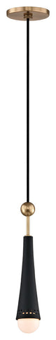One Light Pendant from Tupelo collection in Aged Brass finish. Number of Bulbs 1. Max Wattage 4.00. No bulbs included. Evocations of geometry, nature, and organic chemistry all ring off our Tupelo family. LED light sources glow from within white opal diffusers designed to look snugly wedged into Tupelo`s black cones. A double-row of perforation allows this light to shine through the holes in the textural black metal. On both an engineering and design front, Tupelo`s a contemporary piece. No UL Availability at this time.