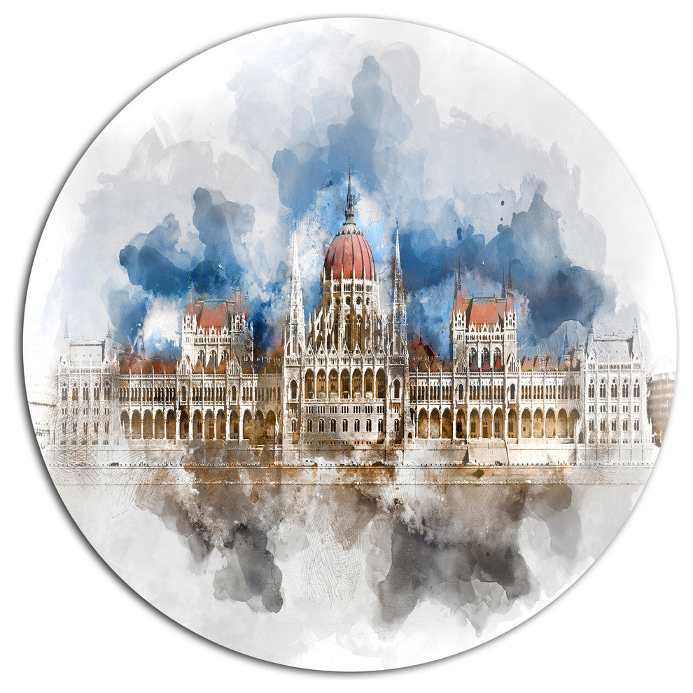 Hungarian Parliament Building, Cityscape Wall Round Metal Wall Art, 36"