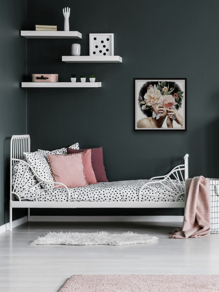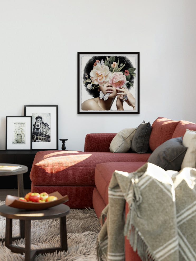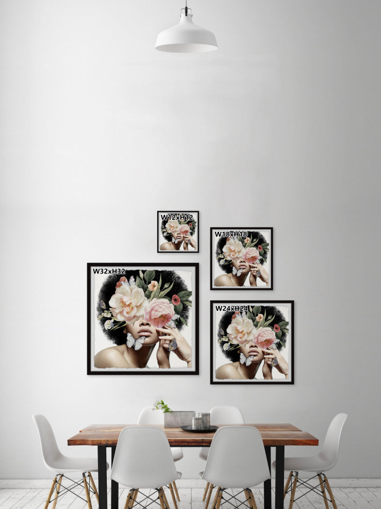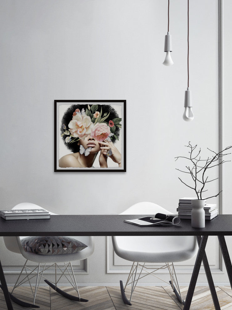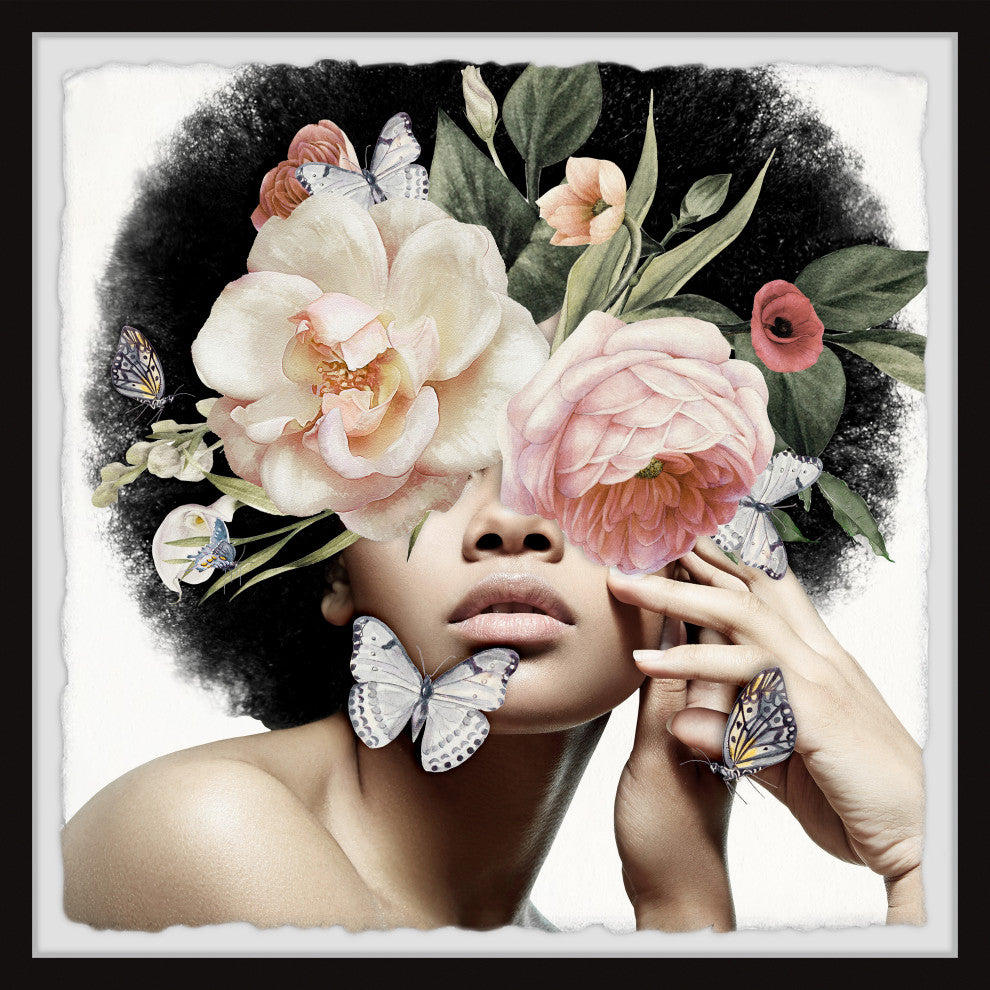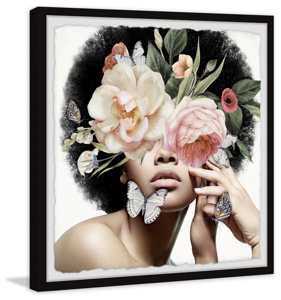 Feminine and floral beauty is depicted in this drawing print that showcases a portrait of a woman whose face is being overtaken by beautiful flowers and butterflies. Proudly printed in the USA, this piece is printed on high quality archive paper and professionally hand-framed. With wall-mounting hooks included, this artful accent is ready to hang up as soon as it reaches your front door.