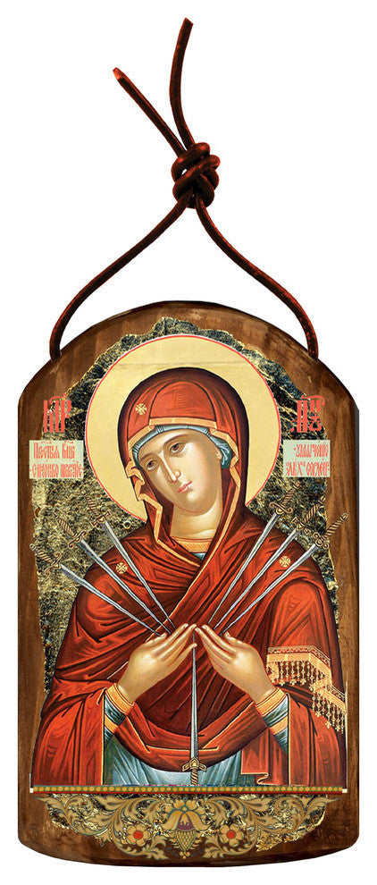 Icon Virgin Mary Of The Seven Swords Wooden Ornament