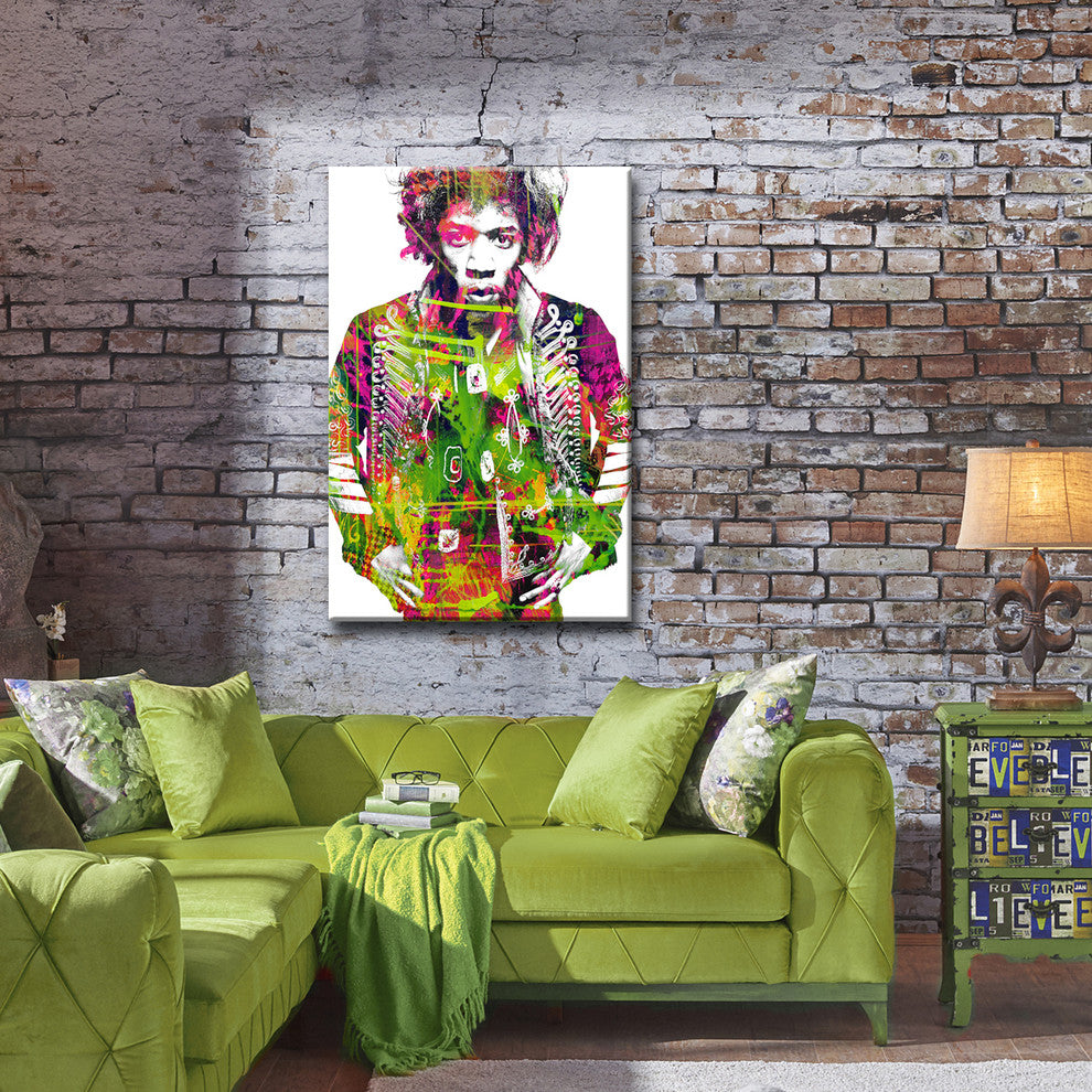 "Iconic Jimmy Hendrix'' from Ready2HangArt series Iconic Art takes you on a journey with this unique retrospective of a star that affected Pop Culture in the past centuries. Frameless and ultra modern... ArtPlexi really brings images to life; a guaranteed talking point with visitors. The surface is clear polished and adhered precisely to the fine ink print allowing the color and metallic attributes to transcend through the reflective nature providing a great depth of field. The rear hanging system is only visible at an angle, and allows the ArtPlexi to appear as floating on your wall creating a sleek statement. Ready2HangArt is a USA based vertical decorative art firm seeking to enhance people''s surroundings with innovative designs, extraordinary quality, and unparalleled value. Proudly Made in America'' R2H makes #decoratingsimplified"