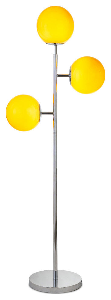 The Ida floor light elegantly intertwines vintage charm with polished modernity. Its opaque shade is drenched in an ambrosial amber that projects an intimate luminance. Adorned with polished silver detailing and a minimalist base with three different heights to the globes, it encapsulates a nostalgic essence, rendered with contemporary finesse- a moody illumination of measured craftsmanship.