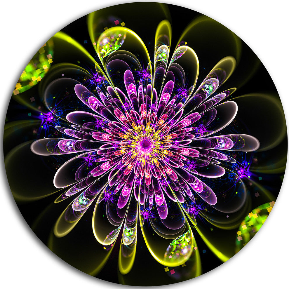 Bring Contemporary Abstraction to your home with this large Circle Metal wall art. This Ideal Digital Art Flower in Purple Yellow Metal Artwork makes it the focal point of any room or office.