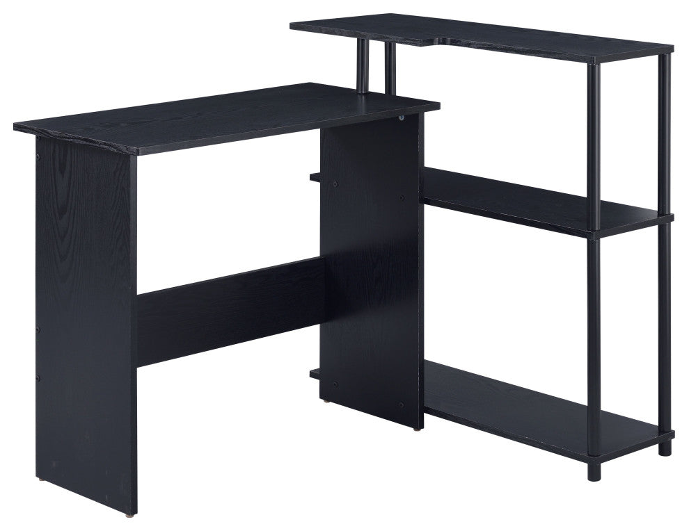Warm, cozy while remaining functional, the Ievi Desk helps you find a good balance between work and life. It features a low bookshelf built into the right side, providing two open storage compartments for book or file organization. An elegant all wood design is used on desk and shelves, while metal frame secures the bookshelf to the desk. Complete your project or enjoy a leisure reading with the Ievi Desk.Features:• Finish: Antique White & Black Finish• Material: Metal, Veneer (Paper), Composite Wood• KD• Rectangular Writing Desk (L Shape)• Desk w/Side Shelf Attached• 3 Tier ShelfDimensions:• Product Dimensions: 39"L X 32"W X 34"H• Net Weight: 193 lbs• Package Dimensions: 35"L X 18"W X 4"H• Gross Weight: 44 lbs.• Package Type: ISTA-3A• Ship Type: GROUND