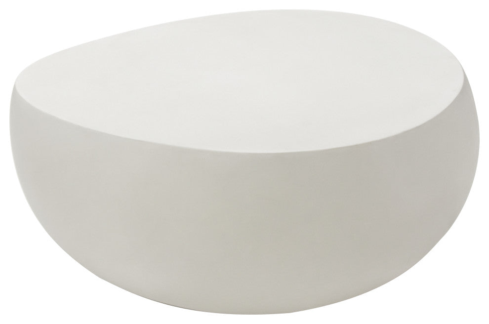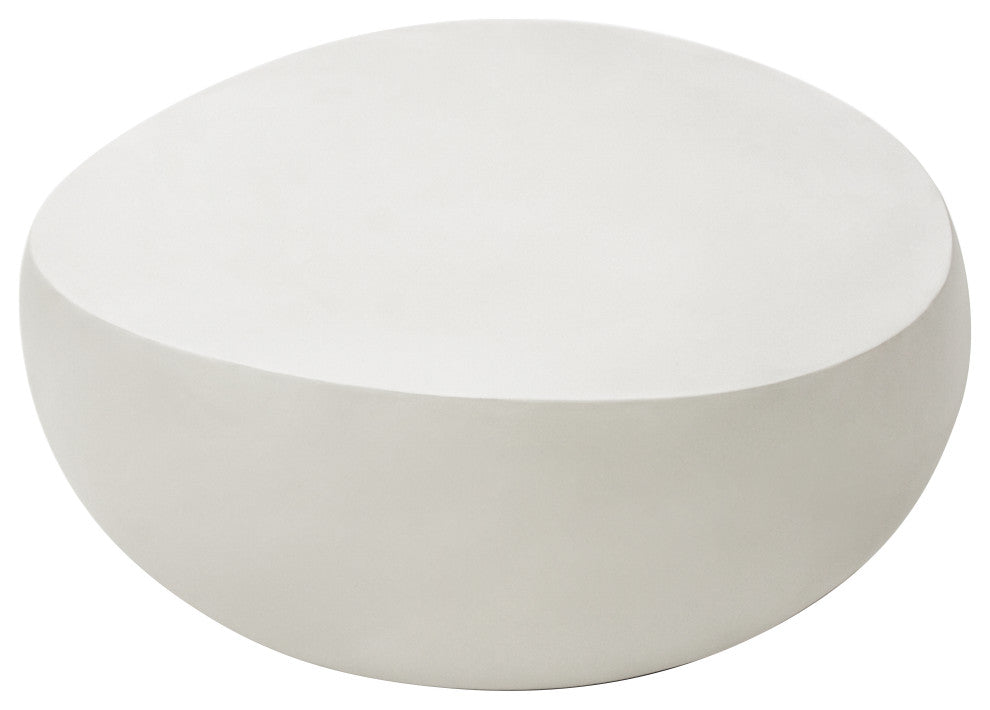 Ikaria 42" Egg-Shape Concrete Coffee Table, Cream White
