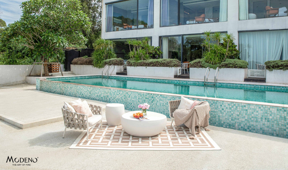 The Elementi Home Ikaria 42" GFRC Cobble Coffee Table is a masterpiece in contemporary design with a striking matte texture. This coffee table is a statement piece, exuding modern sophistication and offering ample surface space for your coffee, decor, and more. For a complete and cohesive look, pair it with the Elementi Home Ikaria 19" GFRC Cobble Side Table. Together, they form a stylish and versatile duo, perfect for enhancing your outdoor space''s aesthetic. With matching matte textures and exceptional craftsmanship, these tables create an atmosphere of understated luxury. - Elevate your surroundings with an air of timeless romance and refined elegance courtesy of our exquisite coffee table. - Drawing inspiration from the enchanting Ikaria Cobblestone Beach, our egg-shaped table embodies a harmonious blend of elegance and symbolism. Reminiscent of the egg stones layered along the shores, a symbol of blessing in numerous cultures, this table radiates a sense of serenity and grace. From the cozy intimacy of your living room to the tranquil retreat of your backyard oasis, it seamlessly integrates into any seating arrangement, infusing your space with an alluring charm. Crafted with meticulous attention to detail from sturdy concrete, its smooth matte texture exudes minimalist sophistication, while evoking the rugged allure of nature''s embrace. Each layer of egg stones serves as a testament to the timeless beauty and symbolic significance woven into every aspect of this exquisite piece. - As the sun sets softly on your outdoor retreat or dances gently through your window, let this piece be the epitome of your elegant lifestyle, effortlessly holding court next to your beloved chat set or sofa, offering a haven for cherished snacks and chilled beverages in an ambiance of refined grace. - Elevate your space with our sleek accent table, blending Scandinavian simplicity with contemporary flair. Its clean lines and minimalist aesthetic make it a plush addition to any modern décor. - Inspired by the captivating allure of Ikaria Cobblestone Beach, our egg-shaped table epitomizes a graceful fusion of elegance and symbolism. Whether it''s your backyard oasis or indoor sanctuary, this table adds a touch of personality to your space. - Crafted from advanced GFRC (Glass Fiber Reinforced Concrete), our concrete table is engineered to withstand the elements. From windy days to rainy nights, its durable construction ensures stability and longevity. - Whether you''re unwinding in your living room or entertaining guests on the patio, our table seamlessly adapts from coffee table to dining companion. Its flexible design ensures suitability for any space prioritizing both style and functionality. - Designed for hassle-free enjoyment, our table arrives fully assembled and ready to use straight out of the box. Say goodbye to complicated assembly instructions and hello to effortless maintenance - its smooth surface is easy to clean, keeping your space looking pristine with minimal effort.