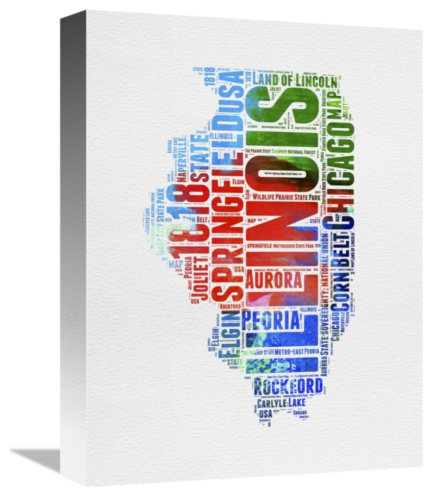"Illinois Watercolor Word Cloud" Fine Art Print