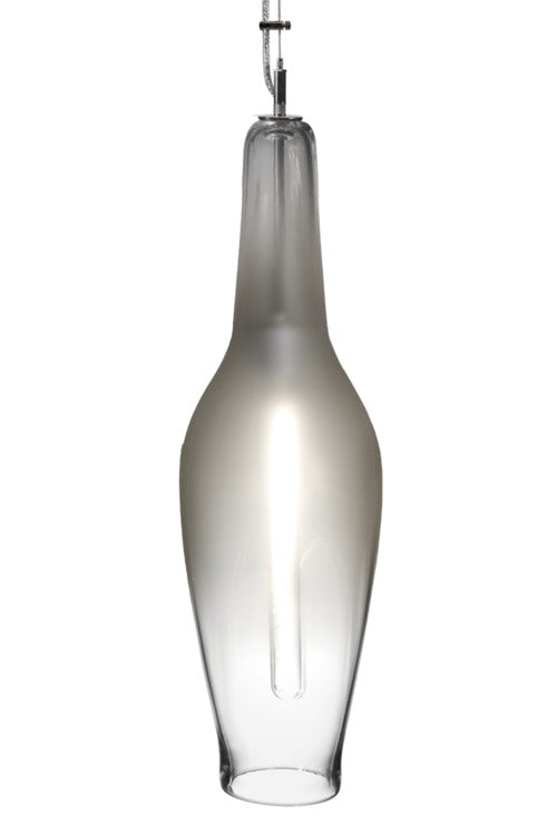 Hand-blown glass pendant by designer Joe Ginsberg. Each pendant in this collection is unique and will vary slightly due to the handmade process of glass blowing. The lighting fixture includes nickel plated hardware with a 5 inch canopy; 6 ft. braided steel electrical cord and an Edison-style Filament bulb. 60w; 120v. Made in the USA.
