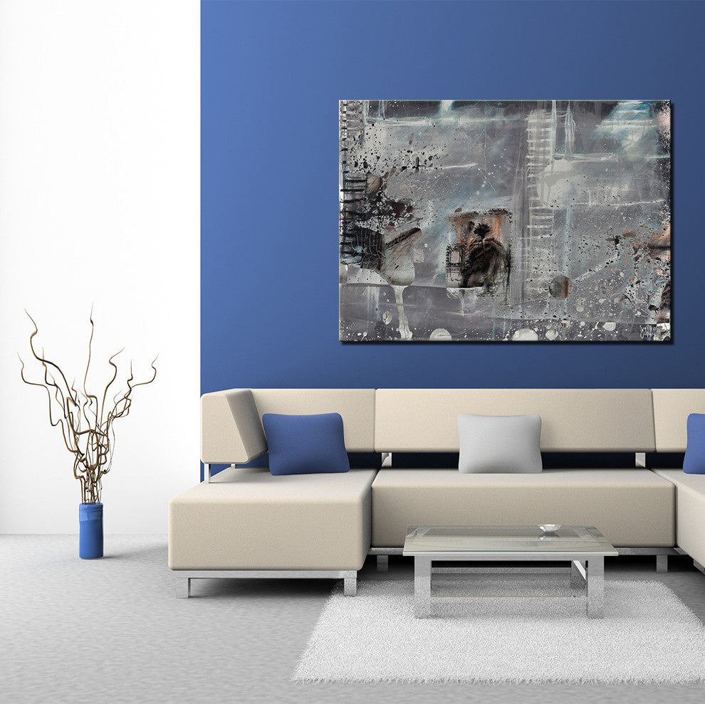 This horizontal abstract is a kodachrome of layered trance, blotched and spirited by the brush of eternity. Inkd II divulges the uninhibited decoration of gray veils and the ecstatic garnishing of spilled ink.