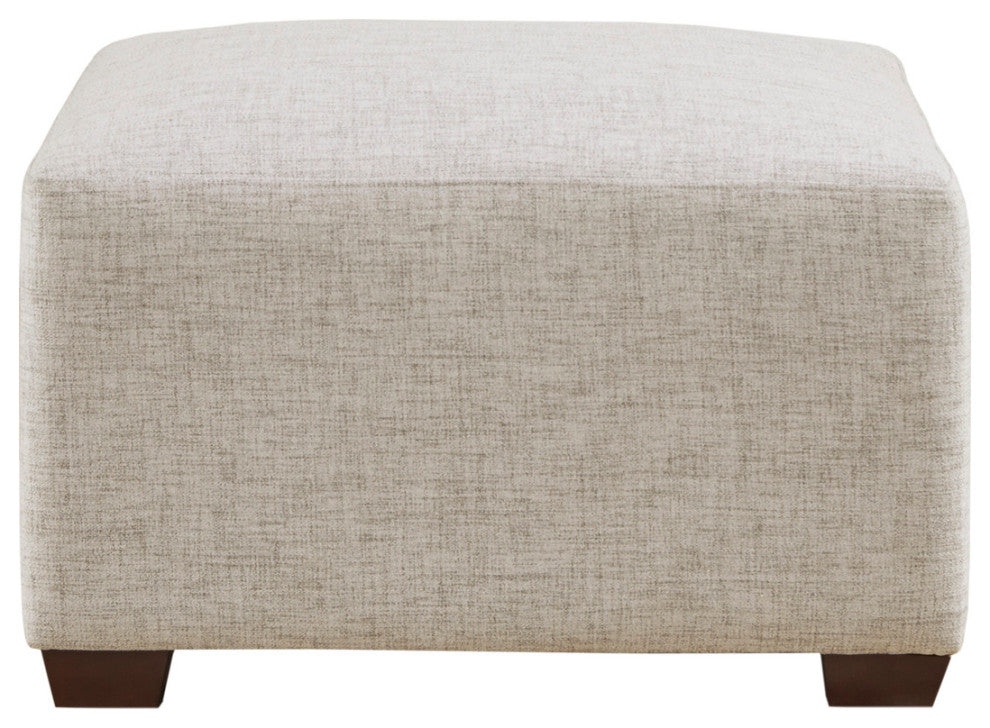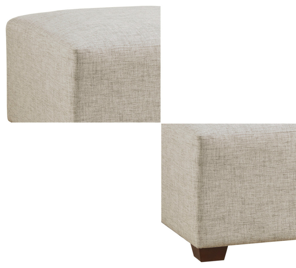 DESCRIPTIONCreate a comfortable seating arrangement in your living room with the modern sectional sofa chairs and ottoman. Upholstered in durable and resilient fabric, the modular pieces feature a sleek and clean design for a casual and long lasting look. With unlimited combinations using pieces from the Molly sofa collection, this modular sectional can be easily tailored to fit in any space and elevate your decor.FEATURES? Modern yet casual modular chair and/or ottoman, providing versatile and customizable configurations based on your space needs? Unlimited configurations possibilities ranging from sofa chaise, L-shaped, U-shaped, and standard sofa shapes, or simply be used as a standalone furniture piece? Low back chairs removable flange seamed pillow included on each chair (ottoman not includes pillow)? Upholstered in performance fabric to enhance durability ? Solid wood block feet in dark espresso finish? Assembly required, tools included? Weight capacity: 300 lbsMATERIALSFrame/Arm: Solid wood and plywoodLeg: Solid woodFabric: 100% polyester, wovenFilling: FoamWood Finish: Dark espressoSIZE DESCRIPTION2 Corner Chair:34"W x 34"D x 28"H (2)1 Ottoman:30"W x 30"D x 18"H
